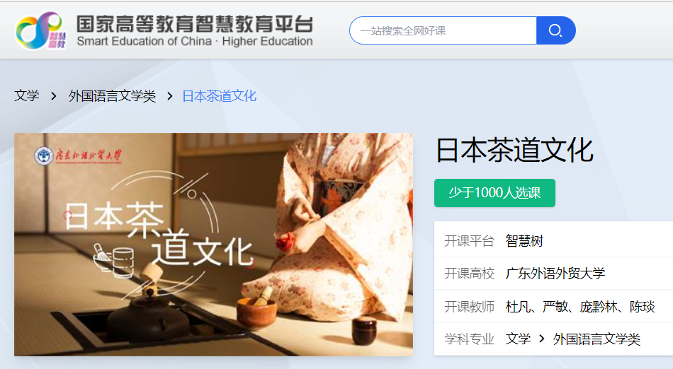 《日本茶道文化》课程入选国家高等教育智慧教育平台