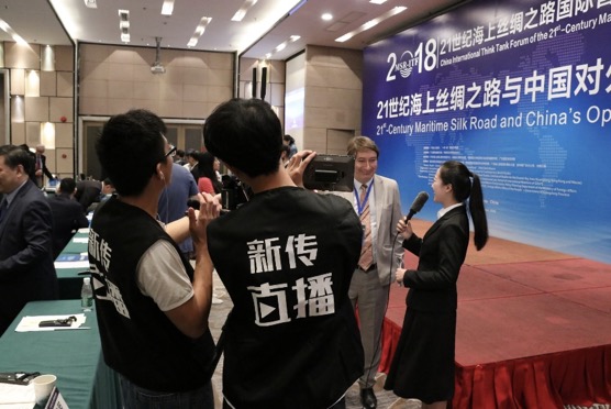 工作室学生现场采访参加国际论坛的外国嘉宾