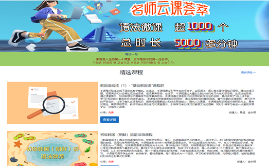 “基础韩国语课程群虚拟教研室”由我校朝鲜语专业全永根教授牵头、包含35名来自30所部属、省属及地方院校的朝鲜语专业骨干教师参与建设,全国现有朝鲜语专业国家级一流本科专业建设点均参与建设。该教研室在“智能+”的时代背景下,践行“以学生为中心”的教学理念,结合信息技术,以基础韩国语课程群为建设内容,通过不断建设和创新线上教学资源、教学平台、线下教学内容等方式来推动课程群的线上线下混合式建设,实现优质教学资源共享,现已建成1门国家级线上线下混合式课程、1门省级在线开放课程、获批1项教育部首批新文科研究与改革实践项目。