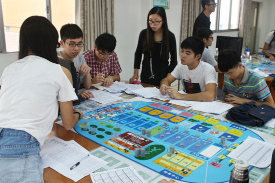 在教学现场,学生们积极参与商量如何配置资金。不过,对经验不足的学生们来说,6个年度的经营可是不容易,“要运用到的综合知识很多,有时候做决策很难”。据悉,有同学上午集中讨论以制定下午上课方向,对这门课程很用心。