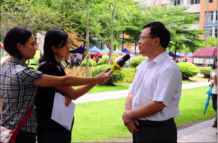 今年我校开放日活动及新闻发布会吸引了广东电视台、广州电视台、《南方日报》、《广州日报》、《南方都市报》、《信息时报》等媒体记者前来采访。我校副校长刘建达,教务处处长、招生办主任詹文都,学生处处长植秀聪,学生就业指导中心主任赵烨等出席发布会,新闻发布会由党委宣传部部长胡文涛主持。据透露,今年我校招生工作亮点多多,更加注重人文关怀和办学特色。