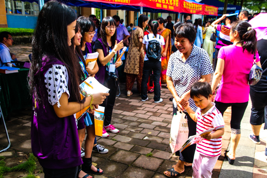 六月的尾巴上,八点是旭日高挂的节奏,阳光明媚的早晨里,广东外语外贸大学2013年开放日拉开了序幕(主场在南校,分场在北校)。广外的校园开放日紧跟着夏至。夏至,鹿角解,蜩始鸣,半夏生,怎么看都是生命开始蓬勃起来的时节。走进广外,考生家长们都会发现这里可亲可爱,他们在校园的各个角度驻足,抱着各种心情,感受这里的一草一木。