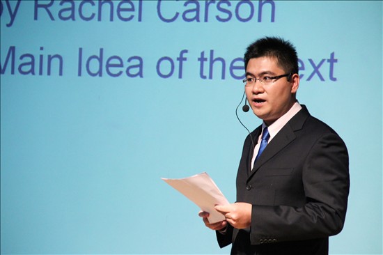 比赛内容分为说课和问答两部分,选手需在10分钟的时间内展示Rachel Carson 的关于环境作品《寂静的春天》的课堂教学设计,并接受评委现场的提问。