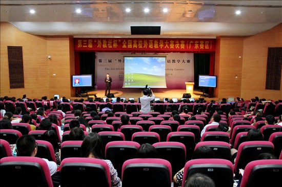 本网讯 10月27日,由广东省教育厅主办,我校承办的第三届“外教社杯”全国高校外语教学大赛决赛(广东赛区)在北校区第六教学楼学术报告厅举行。最终,我校英文学院教师古煜奎凭借新颖的课堂设计和在回答环节中的稳定发挥获得头名(一等奖),我校商英学院教师陈海晖与深圳大学黄壮卫同获二等奖。