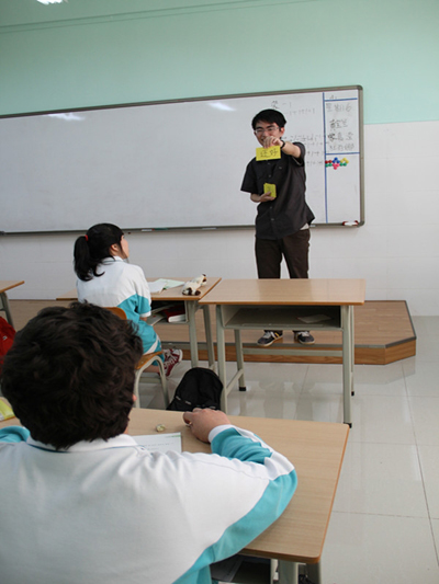 图:对外汉语09级实习生戴春晨在碧桂园学校上实习课