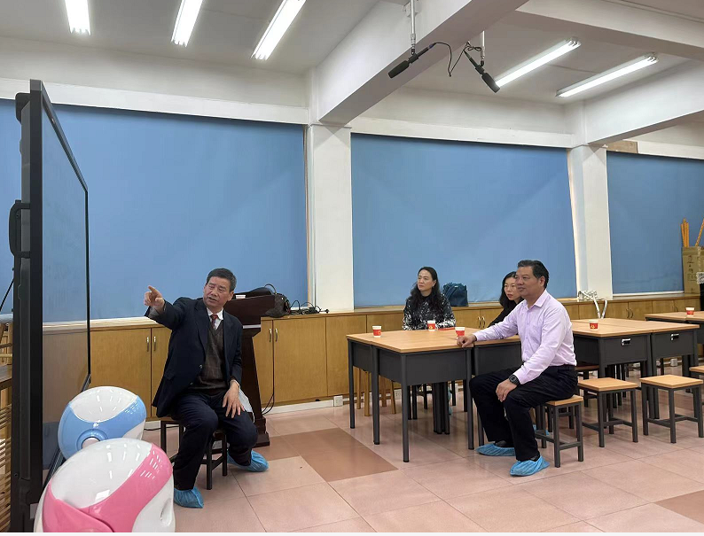 3月21日下午,广东外语外贸大学教务部部长陈金诗、副部长唐静、通识科科长张燕、英语教育学院院长吴岩、党委委员江健、办公室主任陈英等人一行前往华南师范大学教育科学学院,参观教育人工智能实验室,华南师范大学教育科学学院德育神经科学与人工智能实验中心主任、博士生导师黄甫全教授全程陪同。
