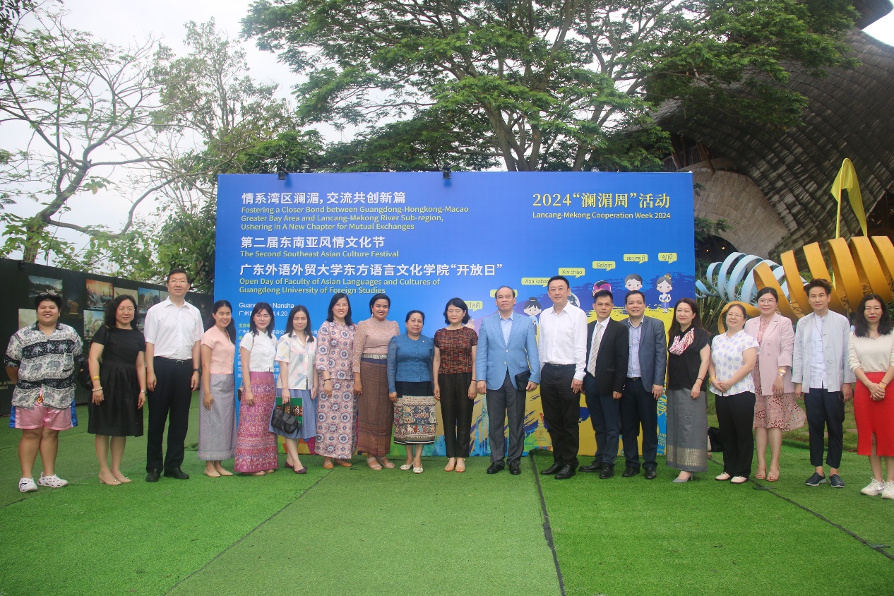 4月20日,南沙水鸟世界生态乐园洋溢着异域风情,由广东省人民政府外事办公室及广东外语外贸大学东方语言文化学院共同主办的2024“澜湄周”、第二届“东南亚风情文化节”暨我校东方语言文化学院“开放日”开幕。广东省政府外办相关负责人、南沙区相关部门负责人、我校党委副书记唐锐,我校相关学院代表及职能部门负责人、南沙区服务贸易协会负责人、各驻穗总领事馆官员及代表、东南亚国家在穗创业人员代表参加活动。