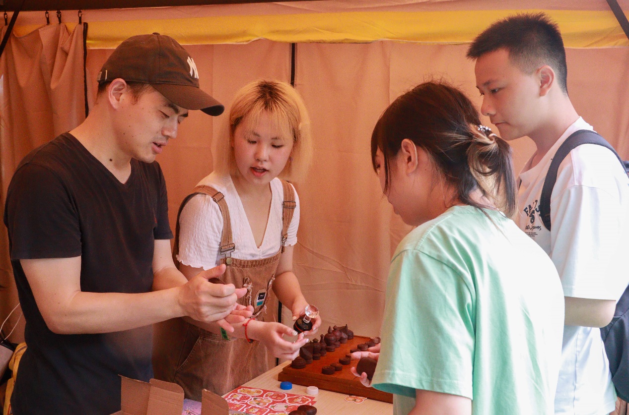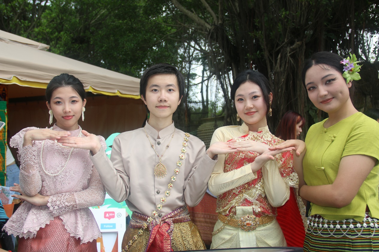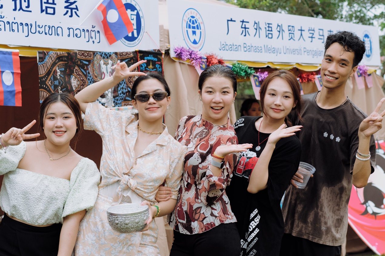 各语系的学生们在摊位上身着绚烂夺目的对象国特色服饰,以精湛的技艺制作东南亚地道的特色美食,如泰国的香浓奶茶与粉红冻奶,老挝的经典法棍与滑蛋组合,柬埔寨的糖渍拉丝红薯与斑糯芒果蜜等。他们还精心策划了一系列富有特色的互动游戏,让参与者在轻松愉快的氛围中深入体验各国的文化风情。