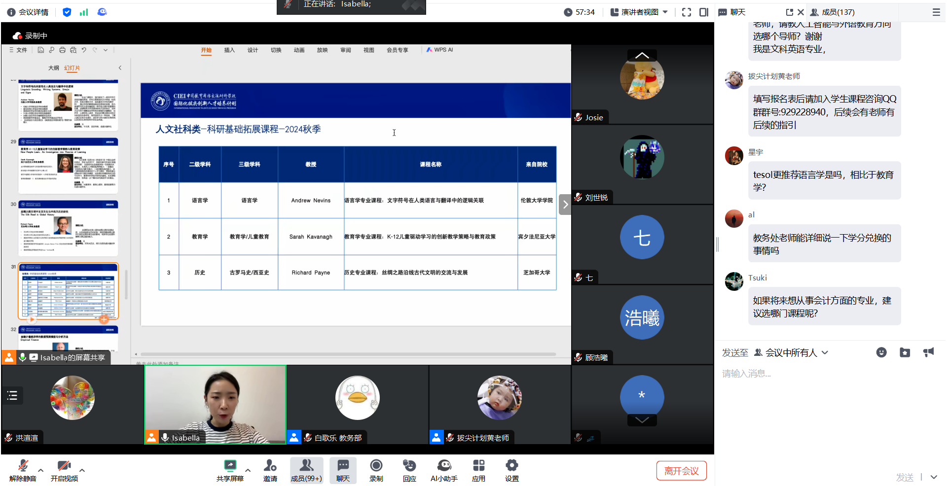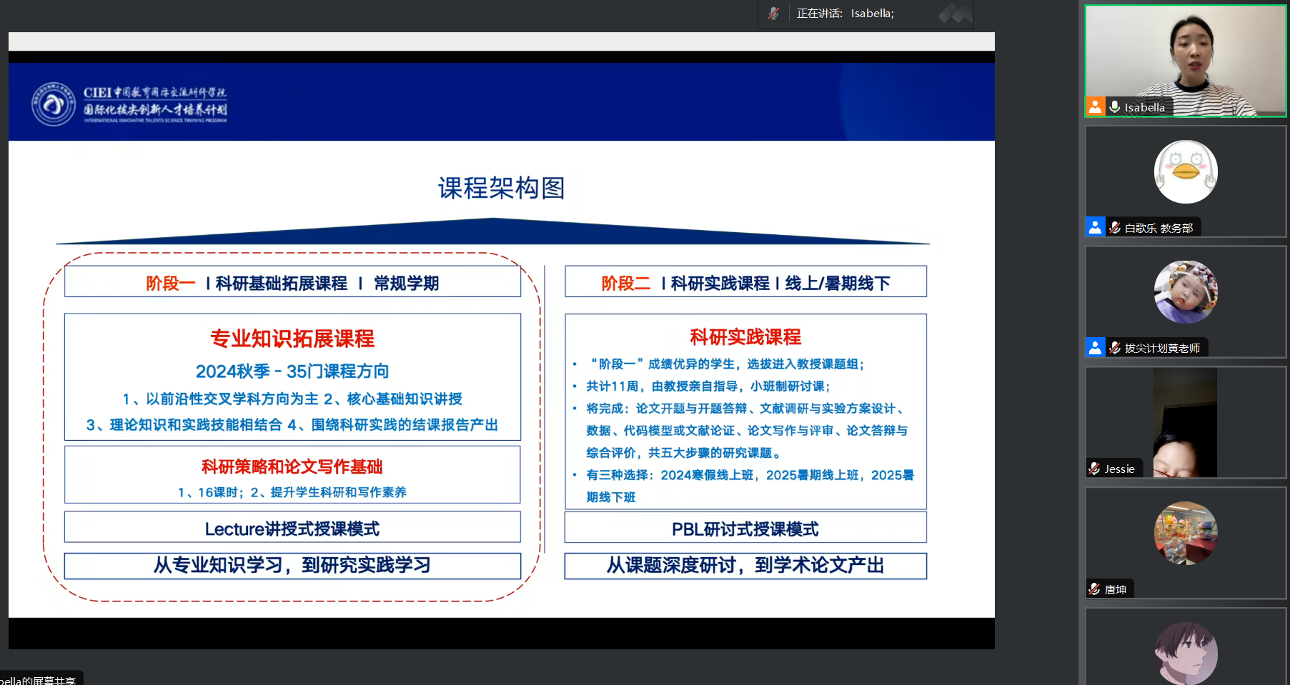 中国教育国际交流协会项目办秦老师进行了项目宣讲。她介绍了该计划的相关背景及详细信息,项目涵盖了多类别学科,由海外教授精心设计,旨在拓展学生的国际视野,体验世界名校授课风格以及接触专业前沿领域。
