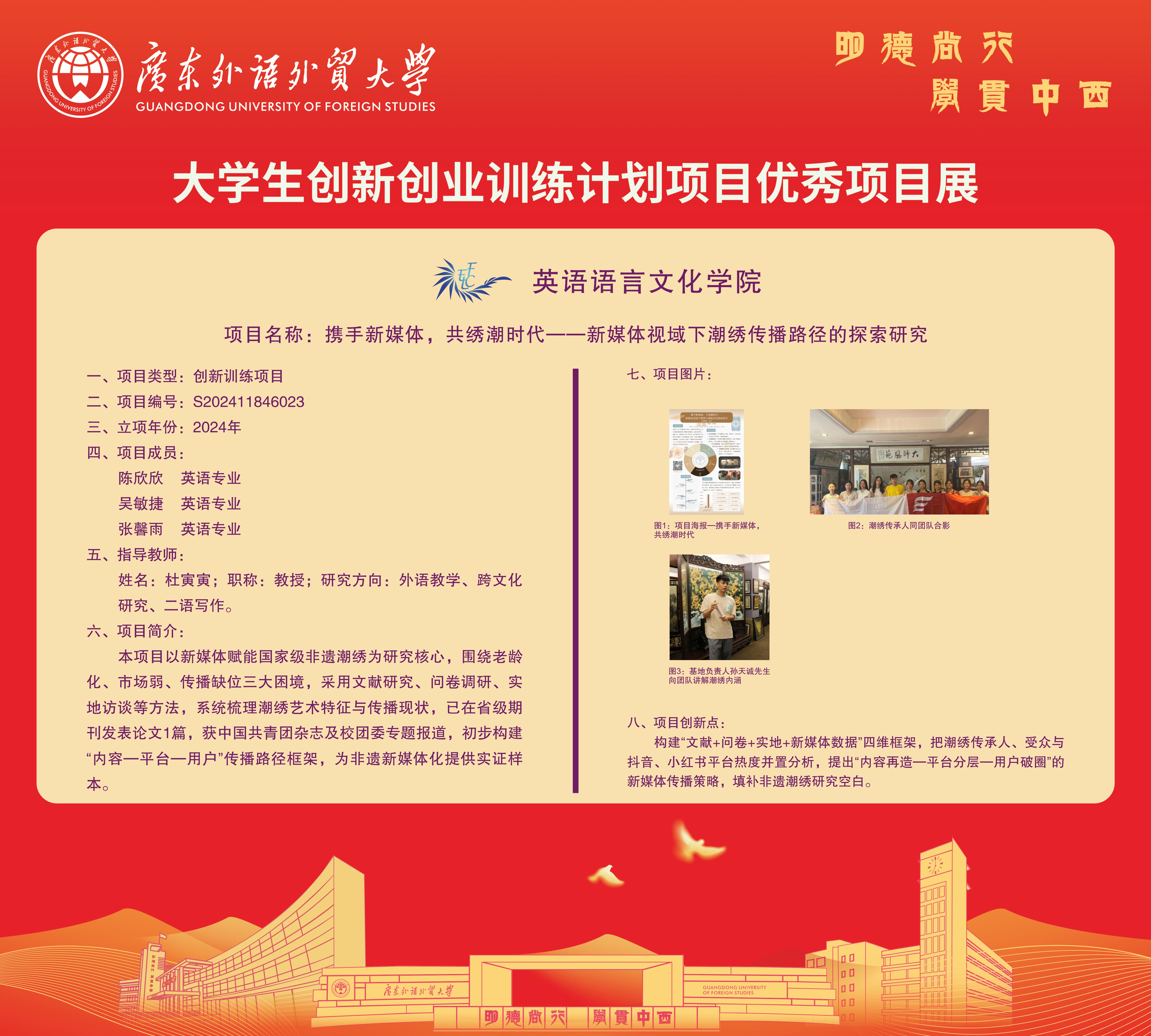 13.项目名称:携手新媒体,共绣潮时代——新媒体视域下潮绣传播路径的探索研究