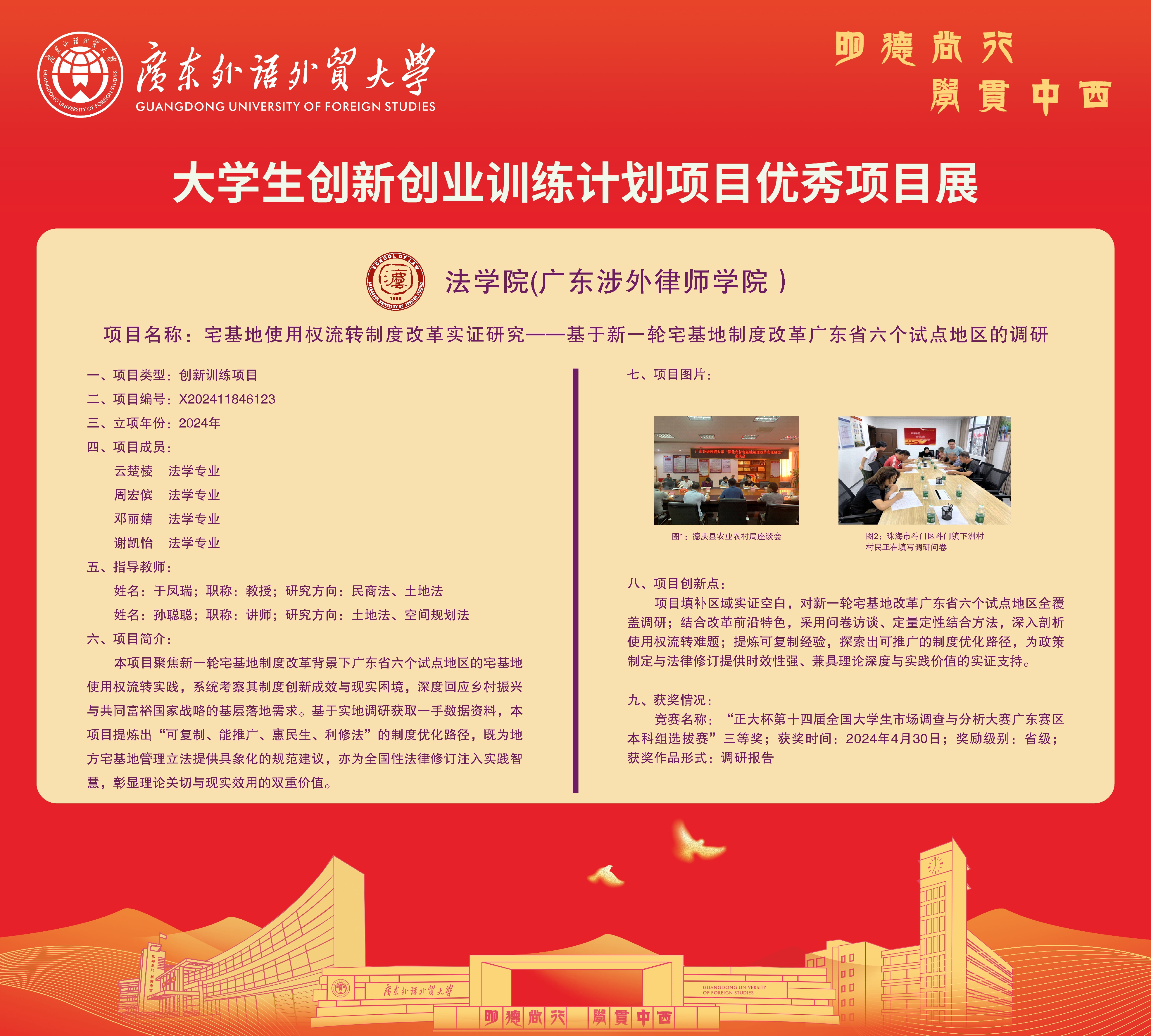 6.项目名称:宅基地使用权流转制度改革实证研究——基于新一轮宅基地制度改革广东省六个试点地区的调研