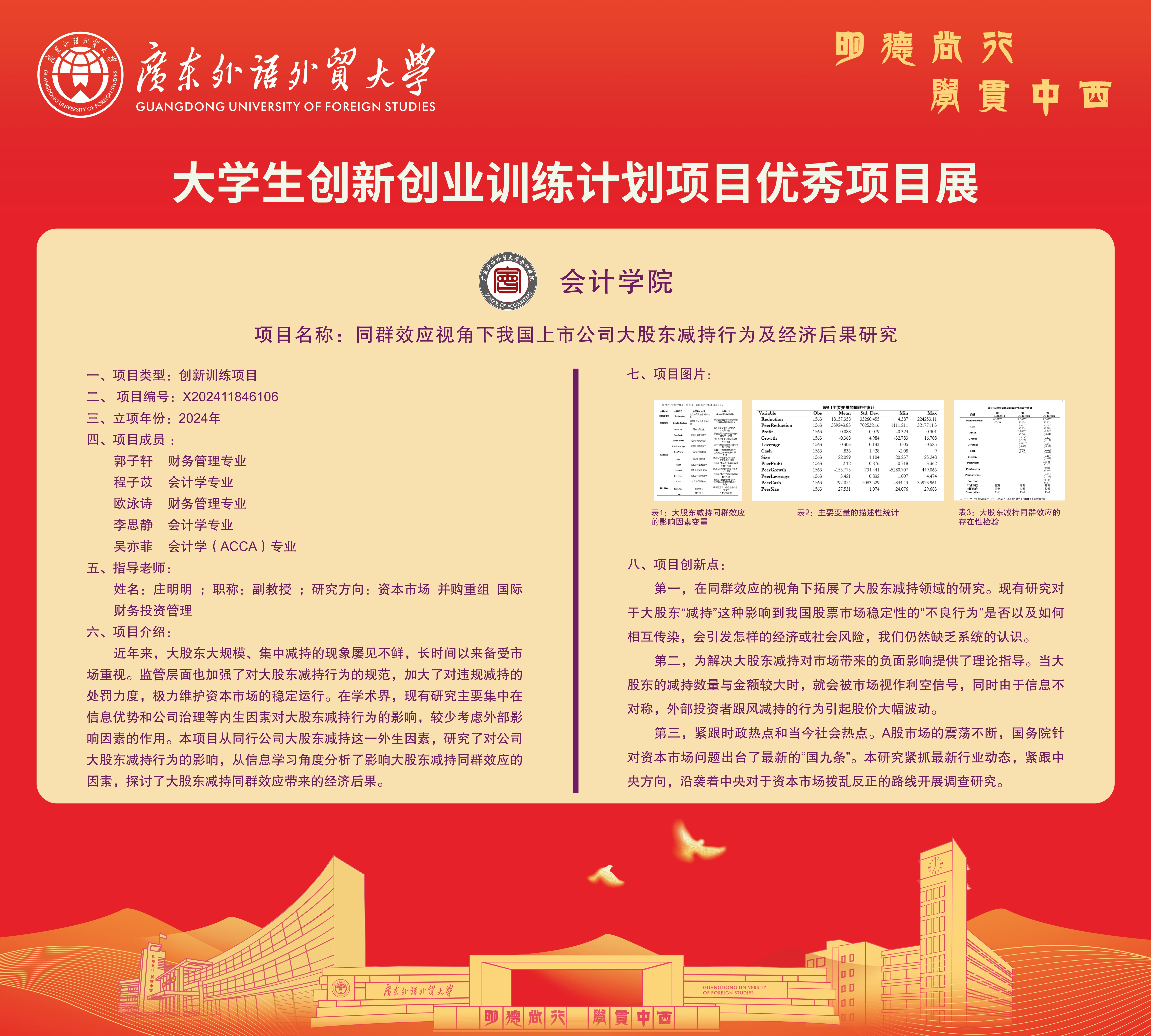 3.项目名称:同群效应视角下我国上市公司大股东减持行为及经济后果研究