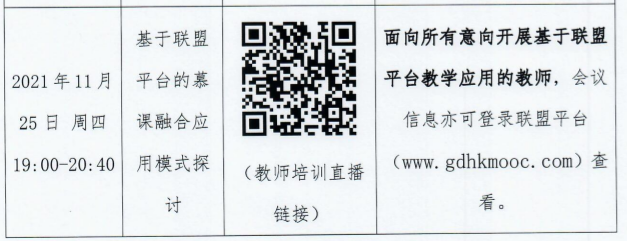 参会指南:面向所有意向开展基于联盟平台教学应用的教师,会议信息亦可登录联盟平台(www.gdhkmooc.com)查看。
